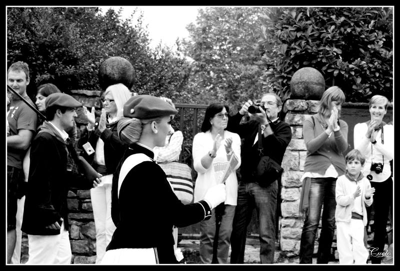 La Cantinera de la compañía Akartegi, Amaia Goikoetxea. Desfilando por la mañana. Fotografía B/N de Maialen Cueto. Año 2013
