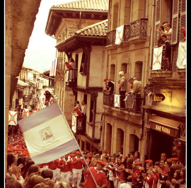 El Abanderado de la Compañía Ama Guadalupekoa. En la Calle Mayor por la mañana. Fotografía de Maialen Cueto. Año 2013