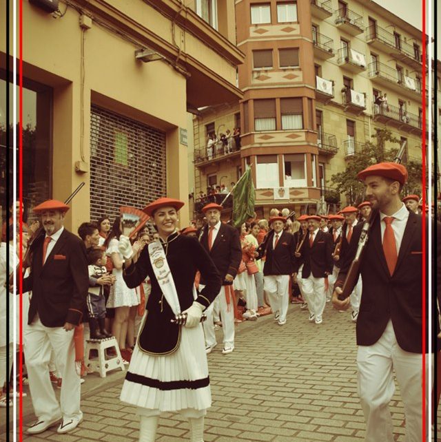 La Cantinera de la Compañía San Miguel Maitane García Peña. Bajando hacia la plazoleta del Junkal en el desfile de la mañana. Fotografía Maialen Cueto.