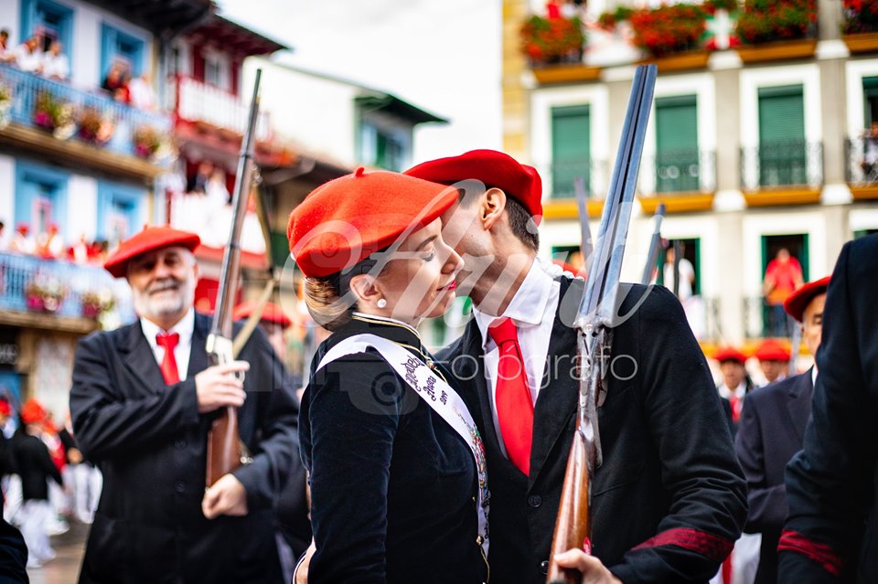 La Cantinera de la Compañía Done Pedro Kofradía, Nagore Lazkanotegi Gómez. Entrando en la Plaza de Armas por la mañana. Aristi Fotógrafo. Año 2019
