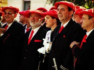 Año 2004. Alaitz Susperregi Aseguinolaza. Cantinera de la Compañía Belaskoenea del Alarde de San Marcial de Irún desfilando en el año 2004. fuente archivo