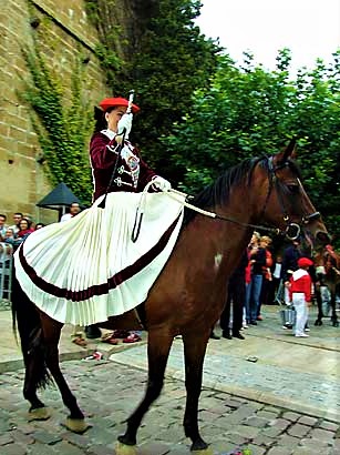 año 2oo5. arla Iridoy Duerto. Cantinera de la Escolta de Caballería del Alarde de Hondarribia en la Plaza de Armas en el año 2005. fuente archivo