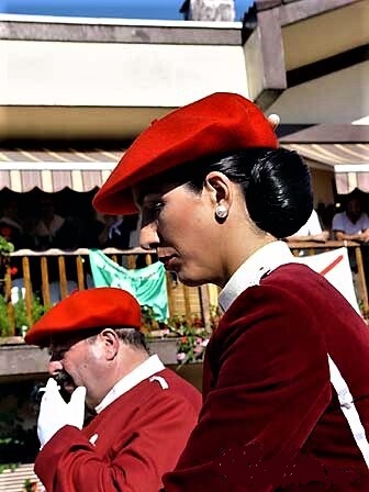 Año 2006. Arantza Martínez Etxebeste. Cantinera de la Escolta de Caballería del Alarde de Hondarribia esperando en las murallas en el año 2006. fuente archivo
