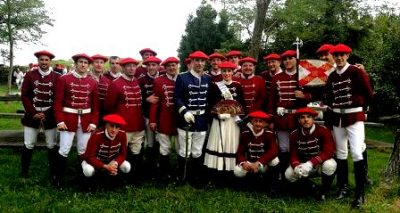 Año 2017. Nahiare Olascoaga Rubio. Cantinera de la Escolta de Caballería del Alarde de Hondarribia, con miembros de la escolta en el año 2017. fuente Nahiara Olascoaga