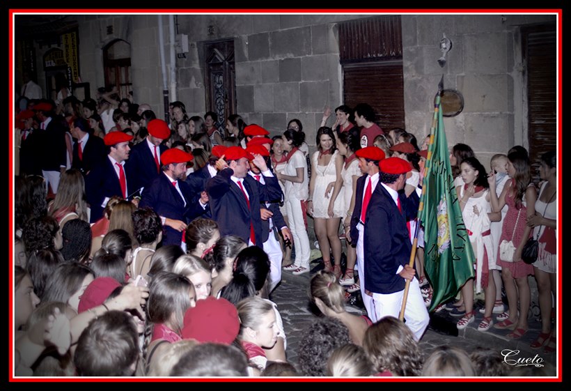 Los Cuberos de la Compañía Mixta. En la Calle Mayor finalizando el Alarde con el Zapatero. Fotografía de Maialen Cueto. Año 2012