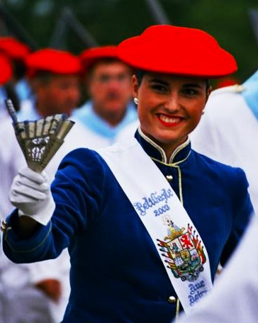 Año 2002. Jaione Eguia Berrotaran. Fue Cantinera de la Compañía Beti Gazte, del Alarde de Hondarribia, en 2002. fuente Beti Gazte