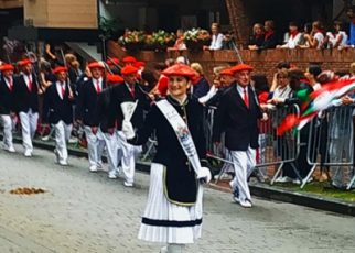 Año 1981. Josune Lazkanotegi. Fue Cantinera de la Compañía Gora Arrantzale Gazteak, del Alarde de Hondarribia, el año1981. fuente Gora Arrantzale Gazteak.