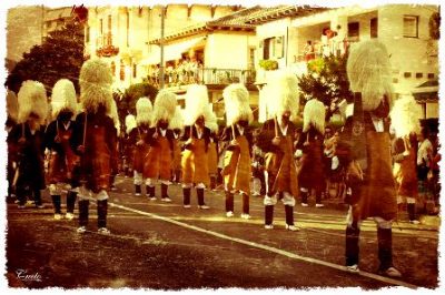 Año 2014. La Escuadra de Hatxeros del Alarde de Hondarribia, con su Cabo al frente en un momento del desfile del año 2014. foto Maialen Cueto