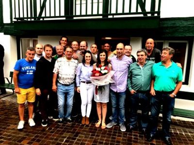 Año 2017. Naiara Fernández Arín. En la Elección de Cantinera de la Compañía Kosta del Alarde de Hondarribia, junto al Capitán de la Compañía. fuente Alarde Fundazioa