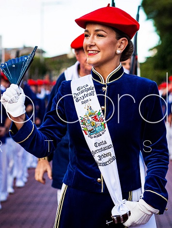 Año 2024. Carla Berrotaran Iridoy. Cantinera de la Compañía Gora Arrantzale Gazteak del Alarde de Hondarribia en el año 2024 foto Nuria Cordoba