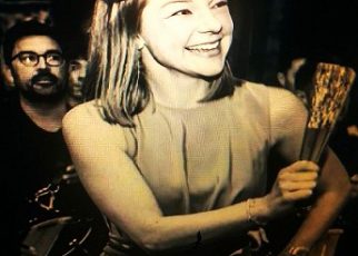 Año 2009. Goizane Eceiza Ugarte. Cantinera de la Banda de Música del Alarde de Hondarribia desfilando en el año 2009. foto archivo