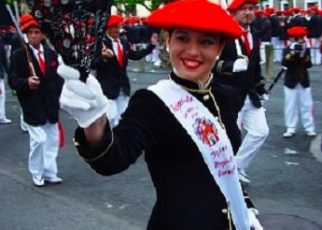 Año 2005. Yusenka Etxebeste Sorondo. Cantinera de la Compañía Gora Ama Guadalupekoa del Alarde de Hondarribia mirada en el año 2005. fuente archivo