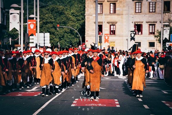 Año 2022. La Escuadra de Hacheros del Alarde de San Marcial de Irún en el inicio del Paseo Colon en el año 2022. foto Gover