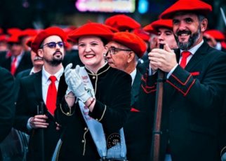 Año 2012. Iune García Luengo. Cantinera de la Compañía Belaskoenea del Alarde de San Marcial de Irún en la plaza Urdanibia en el año 2012. foto archivo