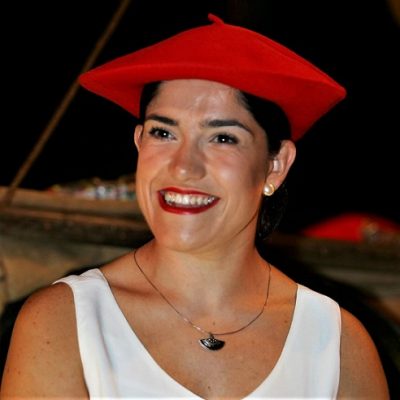 Año 2006. Eneritz Aguinagalde Sunsundegui. Cantinera de la Compañía Jaizubia del Alarde de Hondarribia sonriendo en el año 2006. fuente archivo