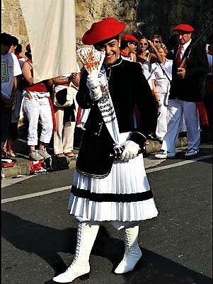Año 2005. María Martínez Gascón. Cantinera de la Compañía Jaizubia del Alarde de Hondarribia desfilando en el año 2005. fuente familiar