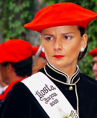 Año 2003. Ainara Iza Sagarzazu. Cantinera de la Compañía Kosta del Alarde de Hondarribia pensativa en el año 2003. fuente festak