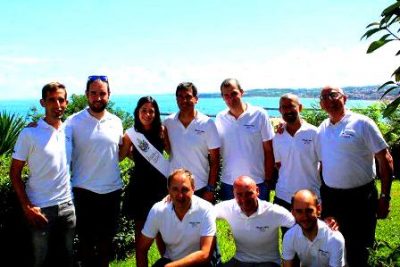 Año 2018. Lara Olazabal Amunarriz. Con la Comisión de la Compañía Akartegi del Alarde de Hondarribia, en el momento de la elección de Cantinera del año 2018. fuente Alarde Fundazioa