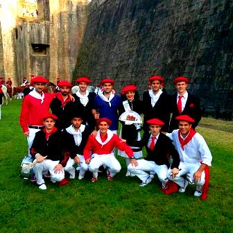 año 2018. Lara Olazabal Amunarriz. Cantinera de la Compañía Akartegi, del Alarde de Hondarribia, con amigos, en las murallas en el año 2018. foto archivo