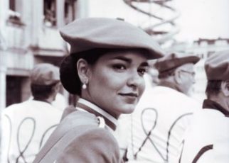 Año 2012. Leire Monje Martín. Cantinera de la Compañía Behobia del Alarde de San Marcial de Irún desfilando en el año 2012. foto Andonigascon