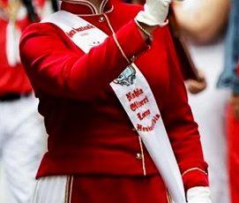 Año 2013. Maialen Arocena García. Cantinera de la Compañía Buenos Amigos del Alarde de San Marcial de Irún en San Juan en el año 2013. foto archivo