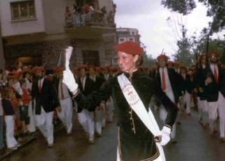 Año 2007. Maite Goikoetxea Aguirre. Cantinera de la Compañía Ama Guadalupekoa del Alarde de Hondarribia concentrada en el año 2007. fuente archivo