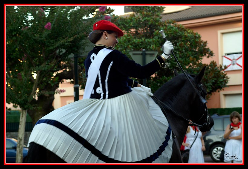 La Cantinera de la Batería de Artillería, Marina Aguinagalde. Desfilando por la tarde. Fotografía de Maialen Cueto. Año 2012
