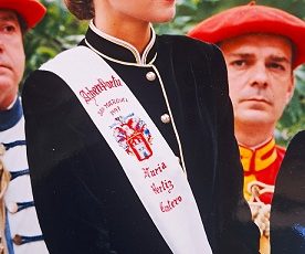 Año 2011. Marta Elduayen Alonso. Cantinera de la Compañía Done Pedro Itsas Gizonen Kofradia del Alarde de Hondarribia sonriente en el 2011. fuente Marta Elduayen
