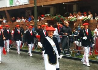 Año 2010. Mayi Etxebeste Mitxelena. Cantinera de la Compañía Jaizubia del Alarde de Hondarribia saludando en el 2010. foto Añes Alkain