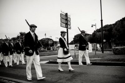 Año 2013. Macarena Klingenberg Peironceli. Cantinera de la Compañía Mixta del Alarde de Hondarribia en las murallas en el año 2013 foto Mª Ortiz Solorzano