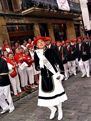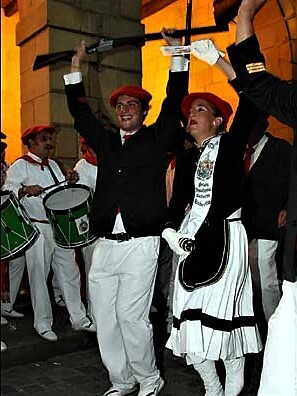 Año 2007. Leticia Pérez del Puerto Galbete. Cantinera de la Compañía Mixta del Alarde de Hondarribia el paso por la marina en el año 2007. fuente archivo