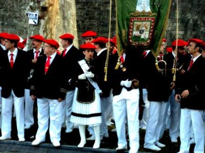 Año 2014. Erika Izquierdo Pizzio, Cantinera de la Banda de Música del Alarde de Hondarribia, en las murallas, en el año 2014. foto Izaskun Aguirre
