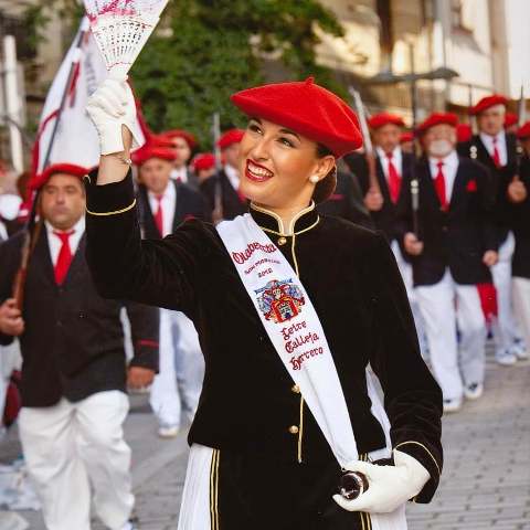 Año 2012. Leire Calleja Herrero. Cantinera de la Compañía Olaberria del Alarde de San Marcial de Irún saludando en el año 2012. foto Lamia