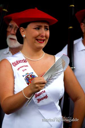 Año 2014. Amets Ugarte Jauregi. Cantinera de la Compañía Olaberria del Alarde de San Marcial de Irún, emoción en el año 2014. foto Marina Aguinagalde