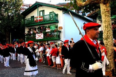 Año 2015. Ismael Goikoetxea Fernández. Abanderado de la Compañía Olearso del Alarde de Hondarribia, en el año 2015. fuente archivo