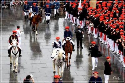 Año 2017. Miriam Martínez Serrano. Cantinera de la Batería de Artillería del Alarde de San Marcial de Irún, entrando en la Plaza San Juan en el 2017. foto Maialen Cueto
