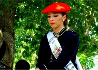 Año 2014. La Compañía Buenos Amigos del Alarde de San Marcial de Irun, con su Cantinera Uxue Gaztelumendi, espera a pasar la revista, vemos a Xabi Zuazu y Javier Iriarte. foto Maialen Cueto