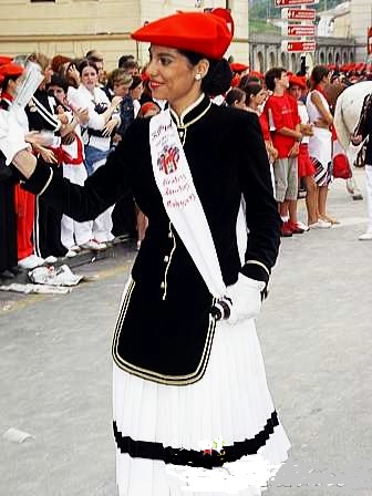 Año 2004. María Piñeira Bachiller. Cantinera de la Compañía San Miguel del Alarde de San Marcial de Irún en la subida de la Iglesia 2004. fuente archivo