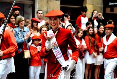 Año 2017. Sara Alkain Kintana. Cantinera Compañía Ama Guadalupekoa del Alarde de Hondarribia en la Calle Mayor, en el año 2017. foto Marina Escalante