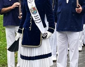 Año 1991. Elene Etxebeste Alvarez. Cantinera de la Tamborrada del Alarde de San Marcial de Irún en un momento de seriedad en 1991 fuente E. Etxebeste