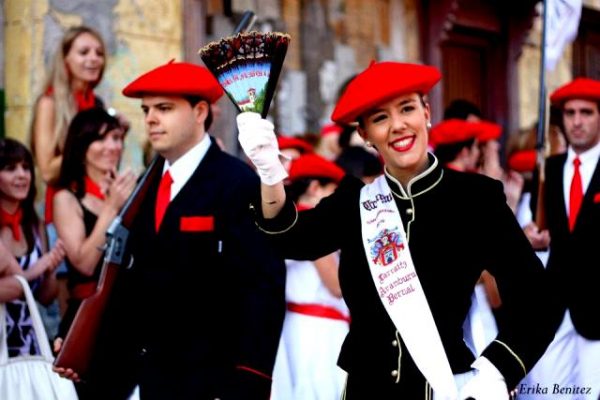 Año 2011. Ane Estomba Cabezón. Cantinera de la Compañía Uranzu del Alarde de San Marcial de Irún en la Revista de Armas del año 2011. fuente Alberto Peciña
